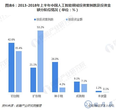從投資案例數(shù)來看,2013-2018年上半年,光電芯片產(chǎn)業(yè)投資階段同樣主要分布在擴(kuò)張期、成熟期,分別占比41.4%、35.3%,合計占比約76.7%;而種子期、初創(chuàng)期累計有24起、66起,占比均不到兩成。