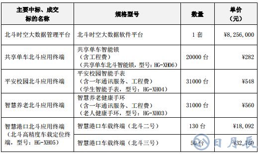 此外,據(jù)廣東省政府采購(gòu)網(wǎng)2018年12月18日發(fā)布了“珠三角衛(wèi)星導(dǎo)航應(yīng)用示范系統(tǒng)工程南沙新區(qū)北斗城市應(yīng)用示范項(xiàng)目中標(biāo)公告”顯示,海格通信為中標(biāo)供應(yīng)商,中標(biāo)金額 6599 萬(wàn)元。2018年12月19日,海格通信收到《中標(biāo)通知書(shū)》。中標(biāo)主要明細(xì)如下: