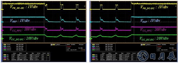 在無負載條件下,當反激轉換器的反饋電壓下降時,PFC級的電源電壓被切斷,PFC控制器停止工作。圖2顯示負載從滿負載到無負載,再到滿負載過程 中的工作波形。一旦第二級反激轉換器進入間歇工作,PFC級便進入間歇工作模式,并與反激轉換器同步停止間歇工作模式。通過對PFC級執(zhí)行間歇工作,可以 消除可能引起潛在問題的大浪涌電流,并且大幅降低待機功耗。為了評測PFC級的間歇工作,使用FAN7930臨界導通模式PFC控制器、帶間歇工作功能的 準諧振反激控制器FAN6300A以及所提議的PFC控制電路,設計了一個用于LED街燈的的120W(48V/2.5A) LEB-016演示線路板。如圖2所示,建議的電路工作出色。表1所示為在各種輸入線路電壓下的待機功耗測量值??梢宰C明:在寬泛的輸入范圍內,可以使待 機功耗降低80%以上。還可以在高線路輸入電壓下獲得低于0.3W的待機功耗。
