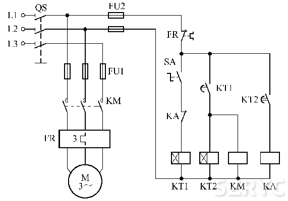 防止正反轉(zhuǎn)轉(zhuǎn)換期間相間短接的三接觸器控制電路