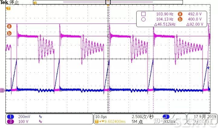 DRAIN(紅色)端、CS(藍(lán)色)端波形圖: