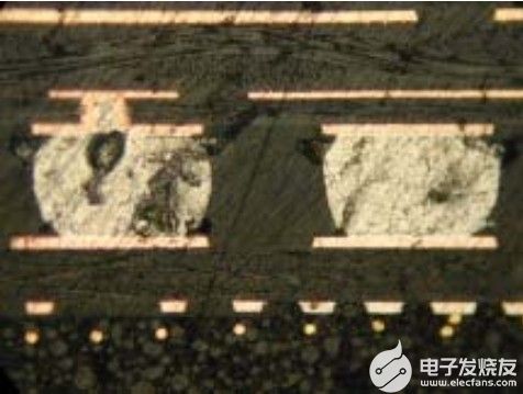 圖32 CPU器件脫落的PCB 焊盤典型外觀照片 ?1? ? ?圖33 CPU器件脫落的PCB焊盤典型外觀照片 2