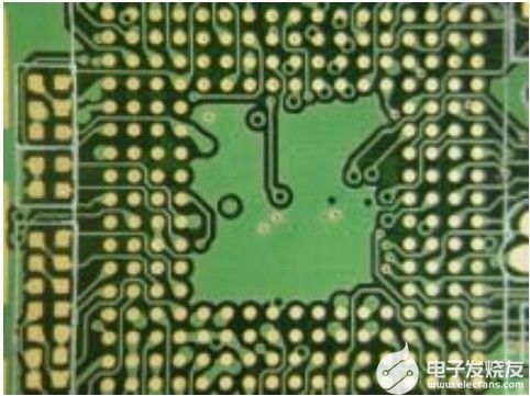 圖4?PCB板中CPU焊盤的外觀照片 ? ? ? ? ? ? ? ? ? ? ? ? ? ? ? ? 圖5 PCB板中Flash的外觀照片