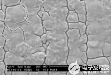 另外,對CPU器件脫落的PCB焊盤進行SEM觀察,發(fā)現(xiàn)焊盤表面存在較多的裂縫,這說明鎳鍍層的表面的致密性較差(見圖32和圖33),因此,后續(xù)浸金工藝中的酸液容易殘留其中,致使鎳鍍層腐蝕氧化,這必將導致焊盤的可焊性不良。