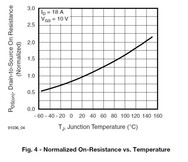 ■MOS的導(dǎo)通電阻隨溫度上升而上升,下圖顯示該MOS的導(dǎo)通電阻在結(jié)溫為140度的時(shí)候,為20度時(shí)候的2倍。