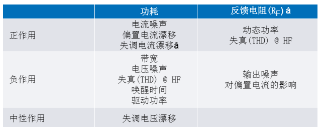 表1.低功耗運(yùn)算放大器的權(quán)衡