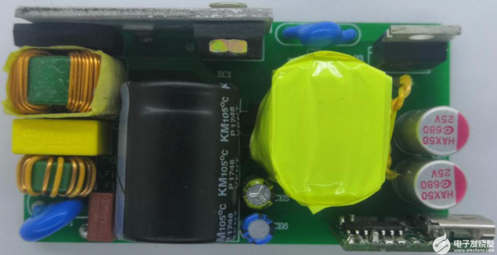 該樣機(jī)尺寸為70.6mm×40mm,在5V輸出時(shí)AC264V輸入待機(jī)功耗<75mW, 115VAC/60HZ, 230VAC/50HZ 輸入時(shí)的平均效率能夠滿足“能源之星 V2.0 VI級(jí)能效”和歐洲 COCT2 標(biāo)準(zhǔn);具有“OCP、OTP、 VDD_OVP、UVLO ”等多種保護(hù)功能;軟啟動(dòng)功能可以減少系統(tǒng)啟動(dòng)時(shí)MOSFET的應(yīng)力,前沿消隱時(shí)間簡(jiǎn)化了系統(tǒng)應(yīng)用。通過(guò)頻率抖動(dòng)和軟驅(qū)動(dòng)電路的設(shè)計(jì),降低開(kāi)關(guān)噪聲,簡(jiǎn)化了EMI設(shè)計(jì),CR6900A還提供VDD電壓從8.5V至54V更寬的工作范圍。?