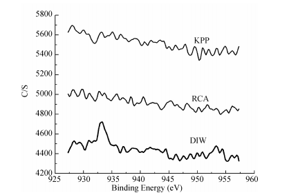 XPS測(cè)量是觀察表面元素的一種重要而有效的方法,探測(cè)極限為百萬(wàn)分之幾(ppm)是可能的。因此,XPS測(cè)量可用于觀察晶片表面的銅污染物。圖2–4顯示了三個(gè)晶片表面的典型全掃描光譜,圖5顯示了Cu2p3的局部掃描光譜.表面的XPS全掃描光譜顯示,硅表面的化學(xué)成分基本上是三種元素:氧、碳和硅。然而,銅不能在典型的全掃描光譜中顯示,因?yàn)樗鼘儆谖⒘吭氐奈廴?,所以它可以在局部掃描光譜中看到。XPS分析結(jié)果見(jiàn)圖5顯示只有沒(méi)有清洗的晶片有清晰的峰,而通過(guò)RCA清洗和KPP清洗的晶片在局部掃描光譜中沒(méi)有峰。因此,我們可以得出結(jié)論,在金屬污染物去除方面,KPP可以達(dá)到RCA清潔的水平,并且這兩種技術(shù)都提供了小于1 ppm的檢測(cè)限。