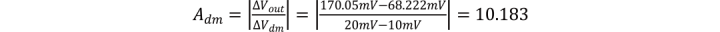 輸入Vdm=20mV ,仿真結果Vout=170.05mV