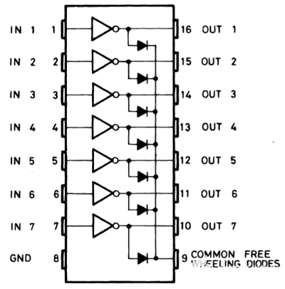 在本項目中,我們將使用ULN2003電機驅(qū)動器IC。IC的引腳圖如下: