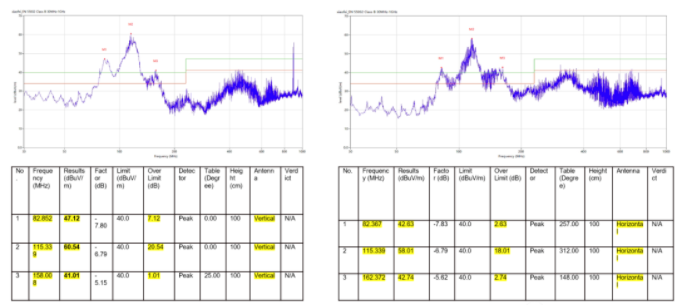 結(jié)果:通過以上兩個措施處理噪聲放大路徑后,全頻段都可以達(dá)到限值以下。