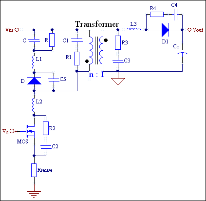 反激式轉(zhuǎn)換器在正常工作情況下,當MOSFET關(guān)斷時,初級電流(id)在短時間內(nèi)為 MOSFET的Coss(即Cgd+Cds)充電,當Coss兩端的電壓Vds超過輸入電壓及反射的輸出電壓之和(Vin+nVo)時,次級二極管導(dǎo)通,初級電感Lp兩端的電壓被箝位至nVo。因此初級總漏感Lk(即Lkp+n2×Lks)和Coss之間發(fā)生諧振,產(chǎn)生高頻和高壓浪涌,MOSFET上過高的電壓可能導(dǎo)致故障。