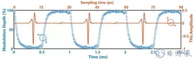 對1kHz方波電信號調(diào)制太赫茲時域波形(紅色)和調(diào)制深度響應(藍色)對速度的要求調(diào)制的上升時間約為1ms,因此很容易實現(xiàn)1kHz的調(diào)制頻率。不過,如果可以犧牲調(diào)制深度,也可以達到高達10kHz的頻率。雖然其他固態(tài)太赫茲調(diào)制器工作在大約2.4MHz的較高頻率段,也可以進一些小調(diào)整提高該器件的調(diào)制頻率。目前受限于金接觸層之間的電阻和電容,通過將尺寸減小到1mm左右,并用石墨烯代替TiOx,調(diào)制速度與其他器件相當。香港中文大學材料科技研究中心主任許建斌解釋說,“這個裝置的另一個好處是可以被改造成現(xiàn)有的商用太赫茲光譜儀。”石墨烯控制的布魯斯特角太赫茲調(diào)制器將真正帶我們進入太赫茲技術進入現(xiàn)實應用的未來。