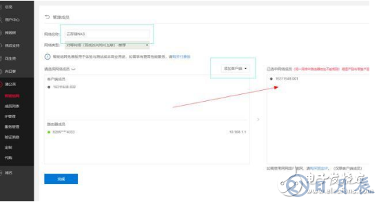 上面搭建的是本地局域網(wǎng)的存儲(chǔ)服務(wù)器,把本地的變成云端存儲(chǔ)還需要接著進(jìn)行第二步操作-智能組網(wǎng)。在路由器的后臺(tái)找到智能組網(wǎng)模塊,在這里給要用到的網(wǎng)絡(luò)取一個(gè)名稱,然后添加成員,成員添加之后會(huì)出現(xiàn)在右側(cè),免費(fèi)版組網(wǎng)成員可以添加3個(gè),記得一定要把路由器添加到組網(wǎng)成員里,之后點(diǎn)完成就可以了。