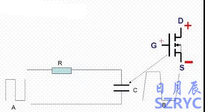 灌流電路MOS管和普通晶體三極管相比,有諸多的優(yōu)點,但是在作為大功率開關管應用時,由于MOS管具有的容性輸入特性,MOS管的輸入端,等于是一個小電容器,輸入的開關激勵信號,實際上是在對這個電容進行反復的充電、放電的過程,在充放電的過程中,使MOS管道導通和關閉產(chǎn)生了滯后,使“開”與“關”的過程變慢,這是開關元件不能允許的(功耗增加,燒壞開關管),如圖所示,在圖2-1中 A方波為輸入端的激勵波形,電阻R為激勵信號內阻,電容C為MOS管輸入端等效電容,激勵波形A加到輸入端是對等效電容C的充放電作用,