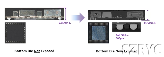 同時(shí)Grinding工藝的應(yīng)用,使封裝厚度有了較大范圍的選擇,同步實(shí)現(xiàn)精準(zhǔn)控制產(chǎn)品的厚度公差。為了去除流程中殘留的多余塑封料,長電科技還采用了LaserablaTIon工藝,以確保產(chǎn)品擁有更好的可焊性。
