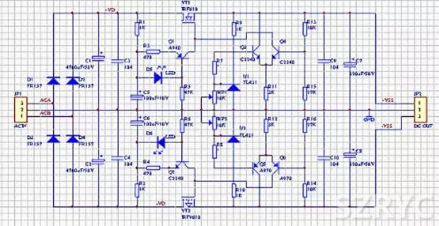 圖1-13 采用TL431的穩(wěn)壓電源并聯(lián)穩(wěn)壓電源的原理是由限流電路提供一比負載電流更大的電流,其一部分供給負載,多余的全部由調(diào)整管對地"短路"泄放掉,一保持輸出電壓的恒定。而串聯(lián)電源電路則是負載需要多少電流,電壓調(diào)整管則"放過"多少電流,一保持輸出電壓恒定。并聯(lián)型穩(wěn)壓電路與串聯(lián)型穩(wěn)壓電路的區(qū)別只在于電壓調(diào)整管于電源的連接方式。它們同樣是起著穩(wěn)壓作用,但電源內(nèi)阻的區(qū)別帶來音質(zhì)的區(qū)別。兩種電路在相同的輸入電壓、相同的負載時,串聯(lián)型穩(wěn)壓電路的內(nèi)阻比并聯(lián)型的要大的多。比如,負載Rf所需電壓U1=30V,電流If=50Ma,穩(wěn)壓電路輸入電壓U0=40V,那么在相同條件下,并聯(lián)型穩(wěn)壓電路的內(nèi)阻只是串聯(lián)型的33%。而電源內(nèi)阻低則意味著電源有交稿的能量傳輸速率,使負載所需需瞬間大電流得到及時供給,使放大器接下來度于力度得到相當?shù)母纳坪吞岣?。并?lián)型穩(wěn)壓電路有功耗大的特點,不過這對于所需電流叫囂的前級是不成問題的,即使對于電流較大的后級,為了改善音質(zhì)也往往采用此種穩(wěn)壓電路。