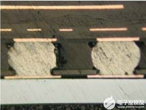 圖32 CPU器件脫落的PCB 焊盤典型外觀照片 ?1? ? ?圖33 CPU器件脫落的PCB焊盤典型外觀照片 2
