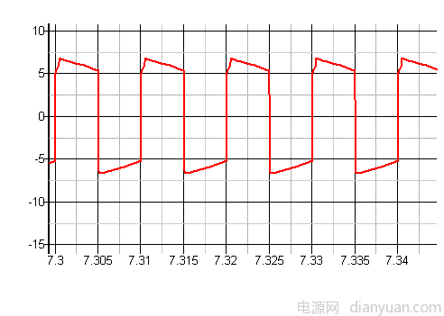 驅(qū)動(dòng)電壓變得平緩了些。如果把驅(qū)動(dòng)變壓器的電感量增加到500uH。驅(qū)動(dòng)信號(hào)就如下圖: