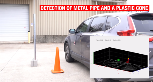 圖3:檢測位于碰撞區(qū)內(nèi)的塑料錐標(biāo)和位于碰撞區(qū)外的金屬桿
