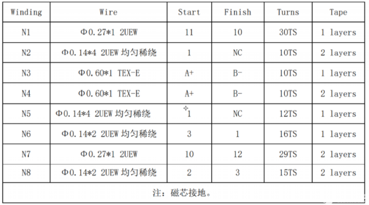 2) 材質(zhì):TDK?PC40或同等材質(zhì);
