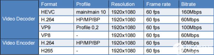 視頻解碼: H264, H265, VP8, VP9,最大支持 1080p 60fps 。
